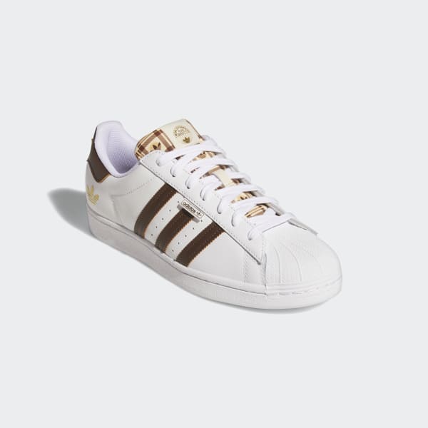 The legacy of the Superstar shoes has spanned more than 50 years. And it continues to grow. When you lace into these rubber-shell-toe sneakers, you become part of the history — a story that started on the hardwood and evolved into many chapters across different corners of our cultural landscape. This look is pretty much the same as the OG, just with a patterned tongue and some gold metallic pops.