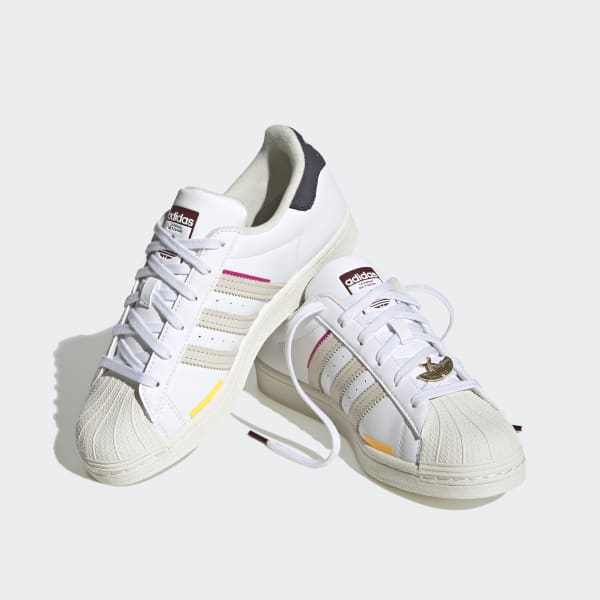 Take in the energy of one of the greatest cities in the world when you pop on these Superstar Shoes. With all the classic style of the signature design, this release comes to life through piping and blocks of color. A metallic Trefoil lace jewel adds an unexpected accent plus a dose of vintage nostalgia. The rubber cupsole and famous shell toe give it that look you won't forget, and the soft lining cushions every step.